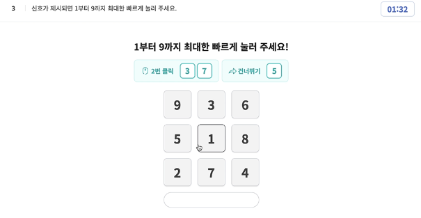 이 순서를 기억하다가 원이 나오면 스페이스바를 눌러주고,