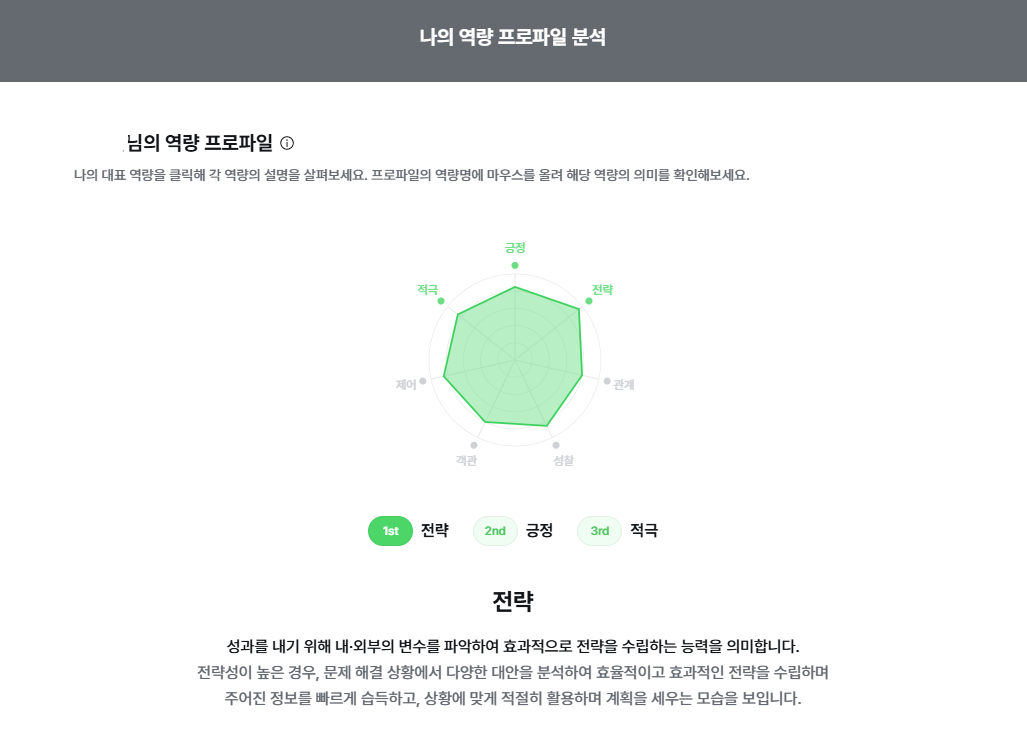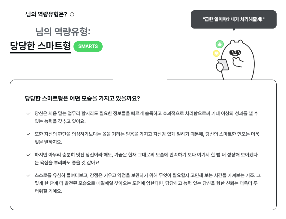 나름 정확한 것 같아 객관적으로 내 강점과 약점을 파악하는 데 꽤나 도움이 된다.