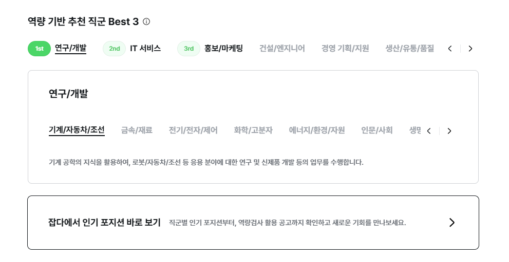 그리고 내 역량 기반으로 어울리는 직군을 추천해 준다.