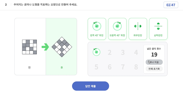 알파벳 회전 같은 경우는 어렵지 않았는데, 도형 회전이 어려워서 유튜브 꿀팁을 찾아본 결과